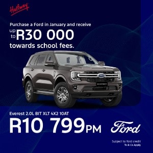 Start the school year with ultimate peace of mind. When you purchase a Ford Everest this January, you can receive up to R30,000 towards school fees. We believe in providing a vehicle that protects your family on the road while helping you invest in their future in the classroom.