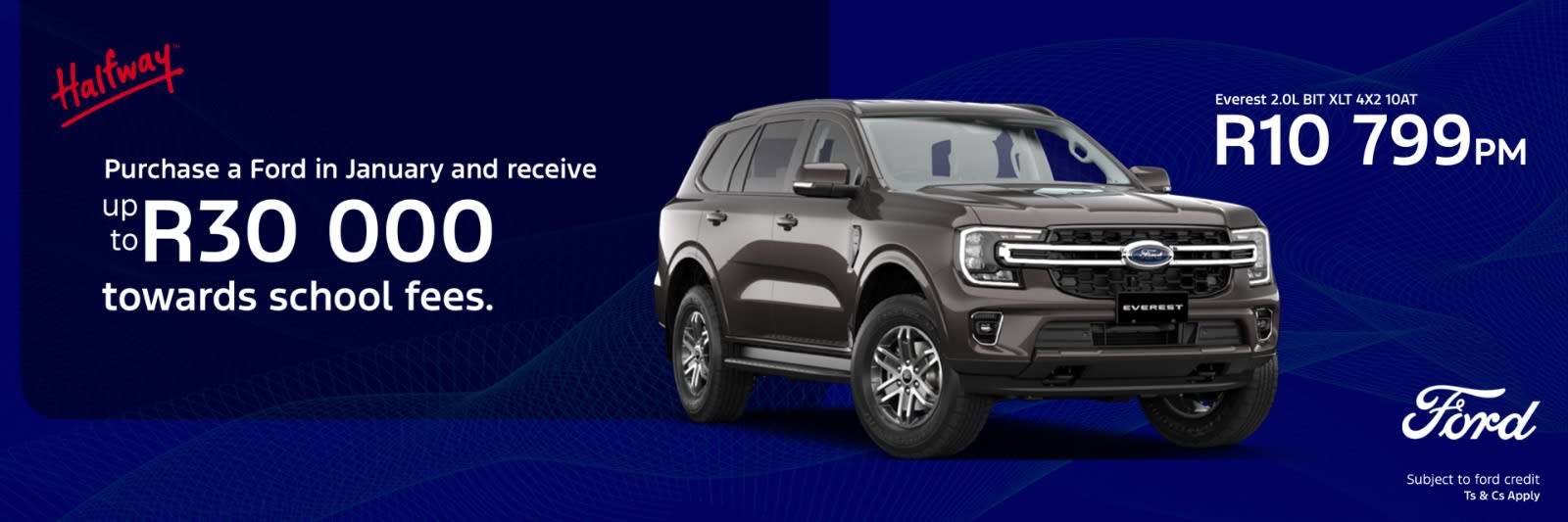 Don’t wait—this exclusive offer ends soon! Visit Halfway Ford Waterfall today to test drive the Ford Everest and secure your school fee bonus before January 31st.